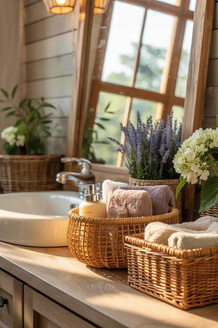 Zum Angebot bei Amazon*Verstauen Sie Kleinteile wie Kosmetik, Toilettenpapier oder Reinigungsmittel in dekorativen Körben aus Rattan, Filz oder Leinen. Das wirkt aufgeräumt und gemütlich.