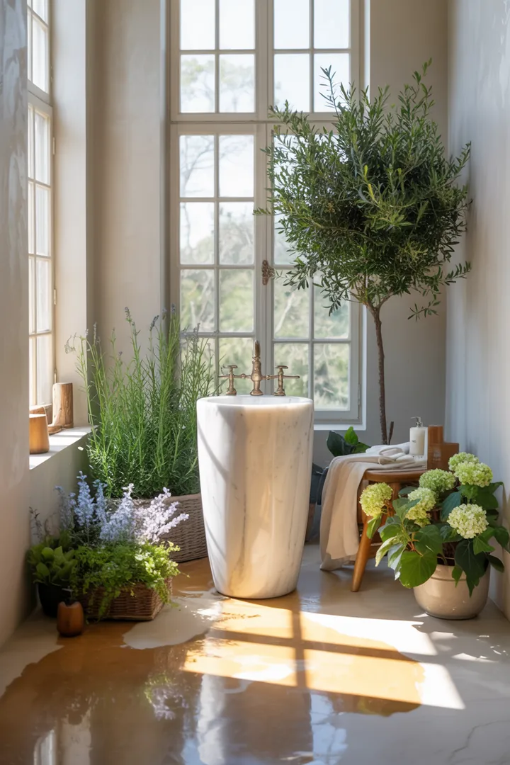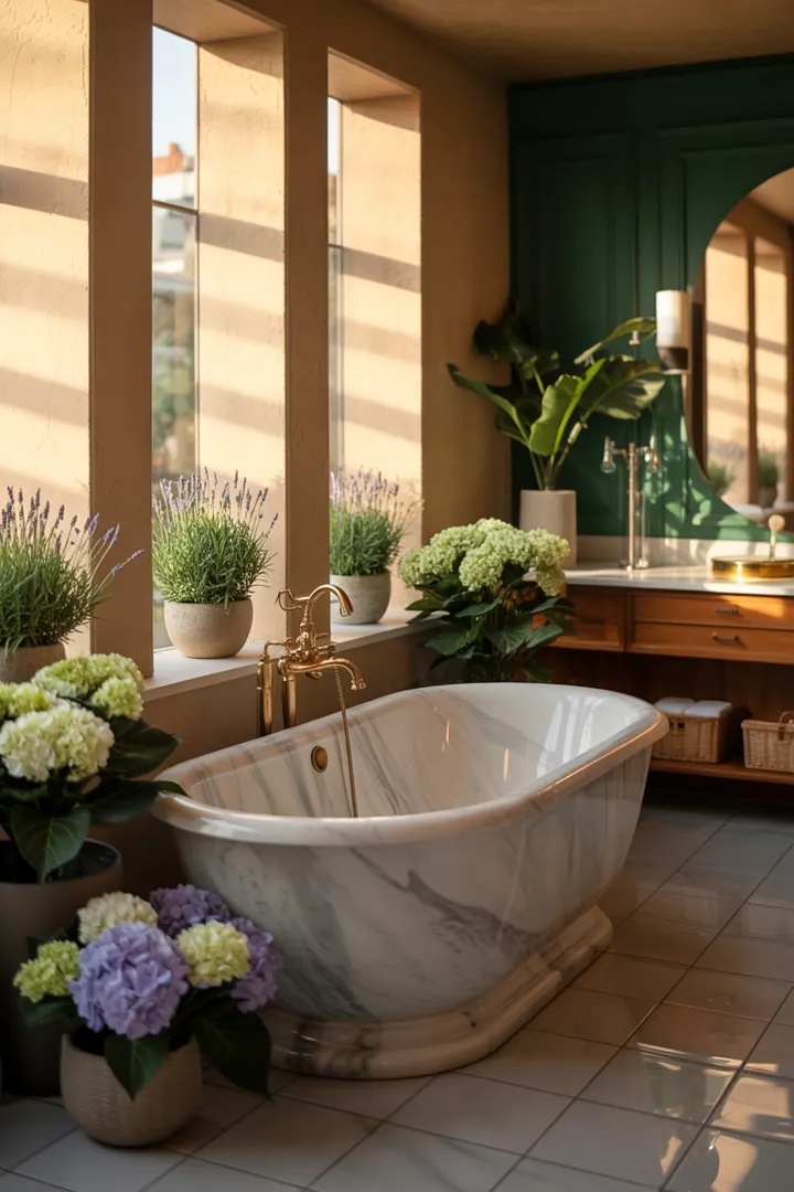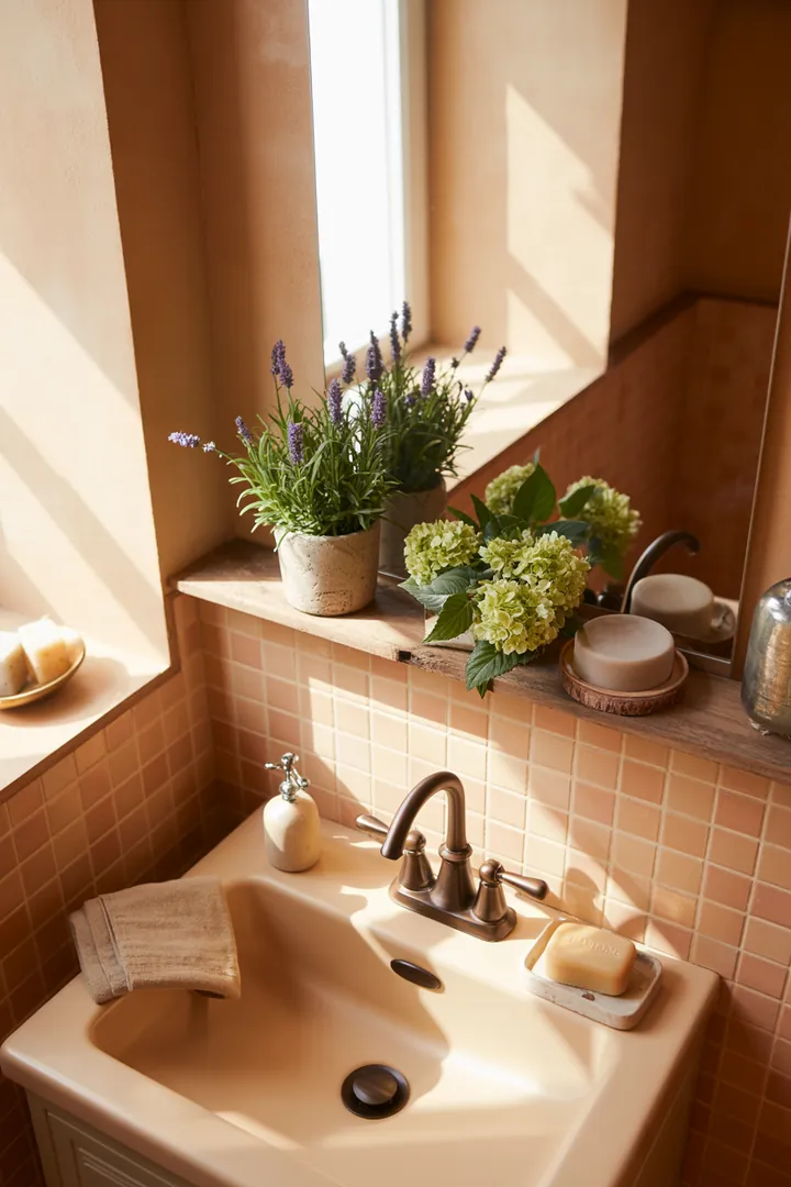 Beige, Terracotta, Salbei oder Creme bringen Wärme ins Bad. Kombinieren Sie matte Armaturen in Bronze oder Messing – das wirkt edel, aber nicht aufdringlich.