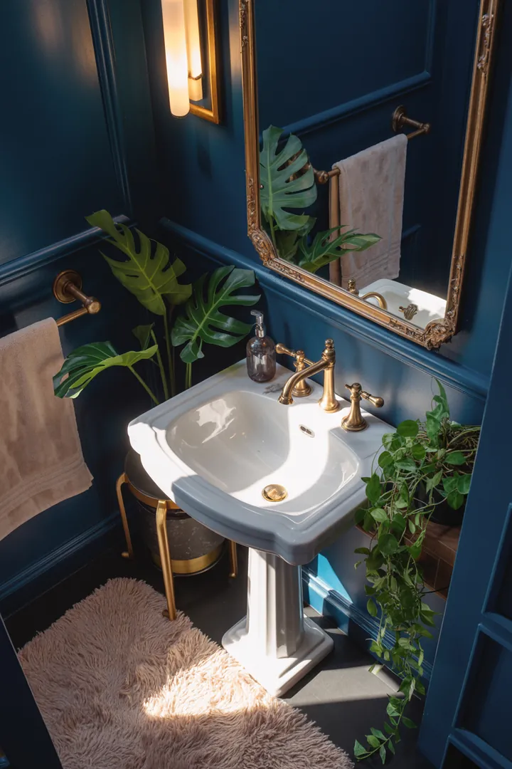 Dunkle Töne kombiniert mit Goldakzenten – das sorgt für Drama & Tiefe auch auf kleinem Raum.