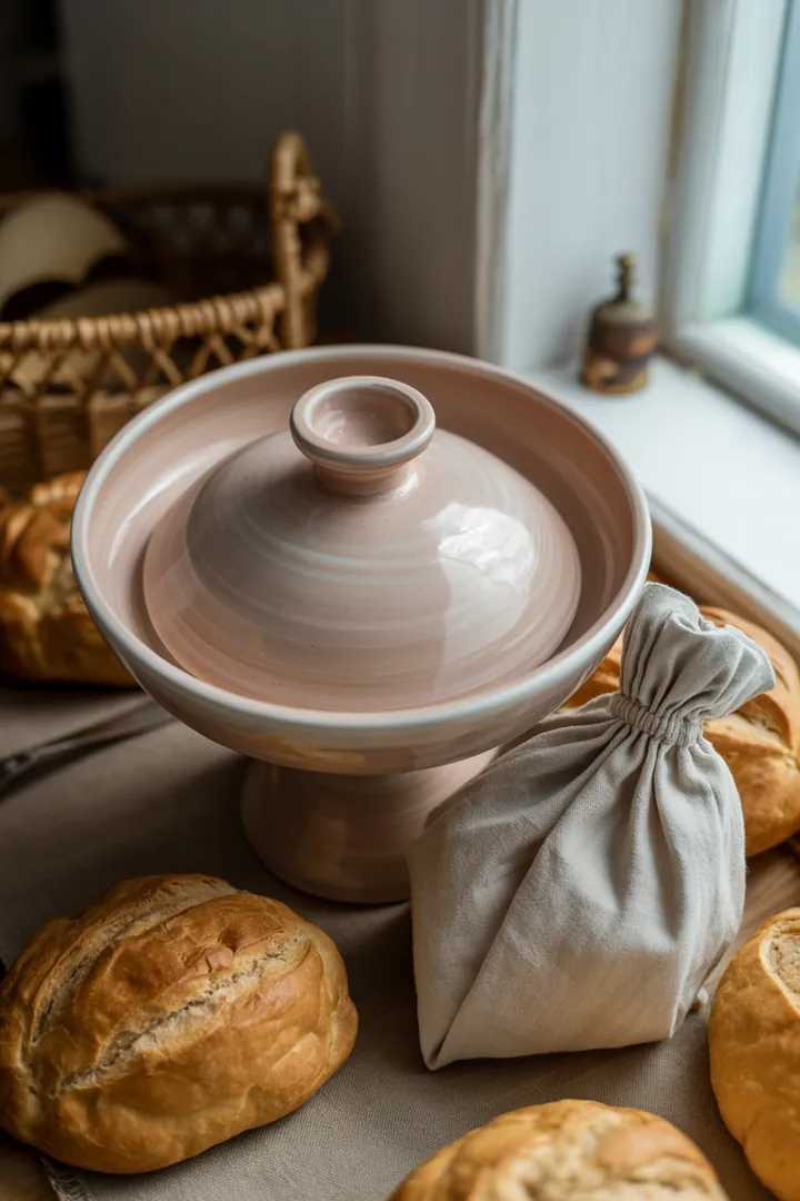 Tipp: Ein Brotbeutel im Brotkasten ist oft die beste Kombination: Der Kasten schützt, der Beutel reguliert Feuchte.
