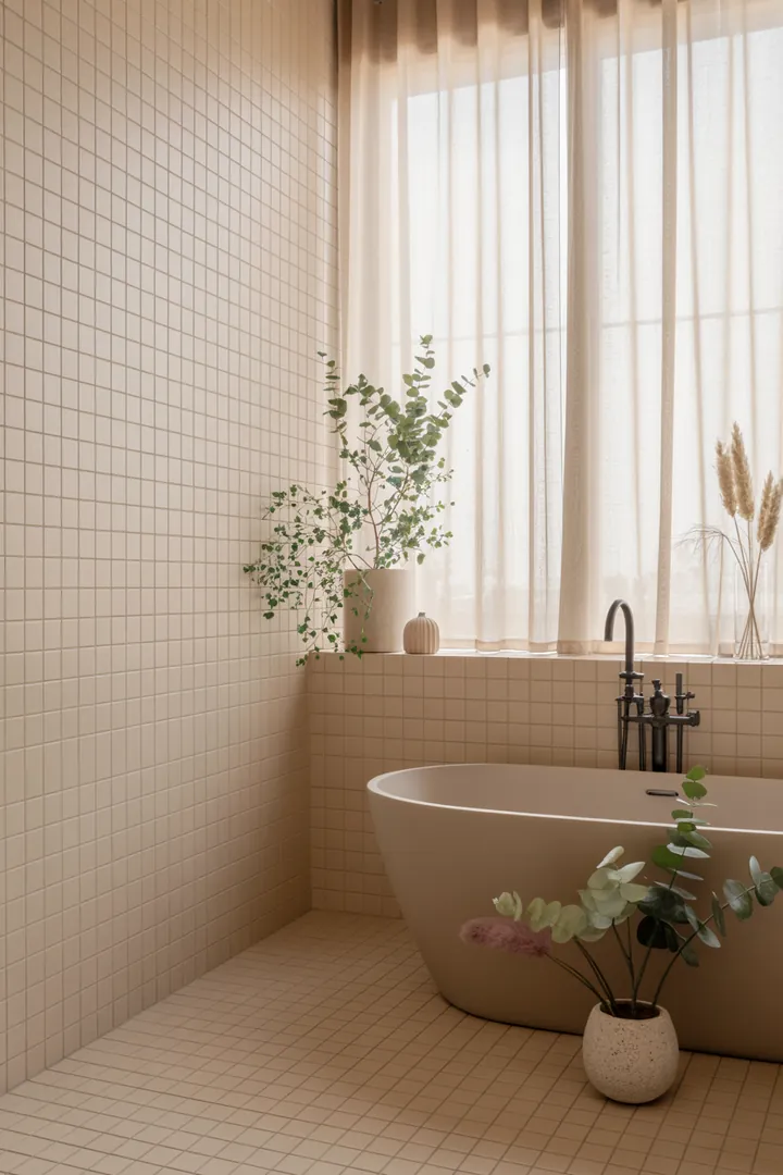 Zum Angebot bei Amazon*Ein durchgängiges Farbschema in sanften Tönen schafft Klarheit und lässt kleine Räume großzügiger wirken. Wand, Boden und Wanne in ähnlicher Farbgebung erzeugen fließende Übergänge – und genau diese lassen das Auge entspannen. Besonders beliebt: Greige, Cremeweiß oder Salbeigrün.