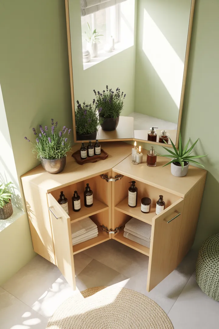 - 🚪 Eckschränkchen mit Spiegeltür (perfekt für Pflegeprodukte)