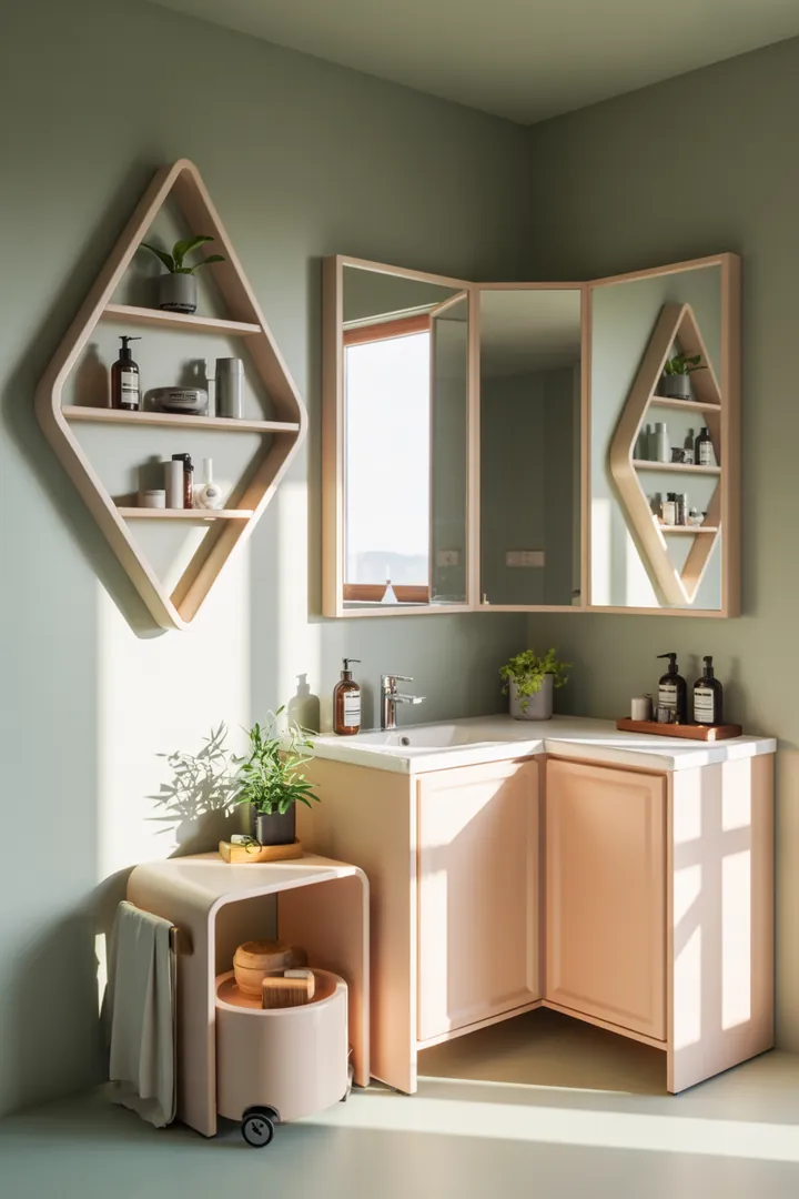 - 🧴 Dreieckige Waschbeckenunterschränke mit Push-to-open-Technik