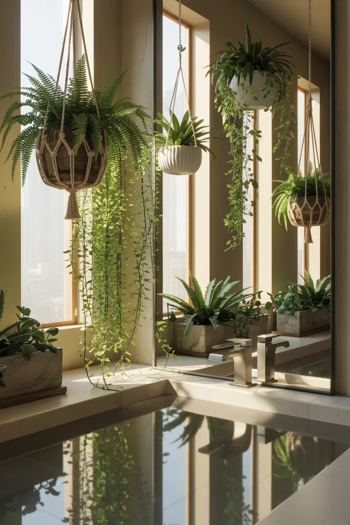 Zum Angebot bei Amazon*Hängeampeln mit Farnen, Grünlilie oder Hoya bringen Leben in den Raum – ganz ohne Stellfläche zu beanspruchen. Besonders stilvoll wirken Modelle aus Makramee oder mit Metallrahmen. Tipp: Direkt vor dem Spiegel aufgehängt, verdoppelt sich die Wirkung.