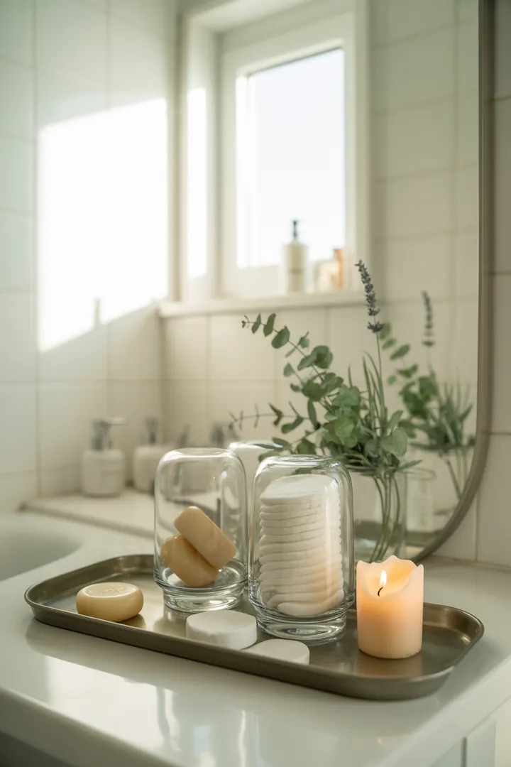 Ein ätherisches Öl, eine kleine Duftkerze oder ein Mini-Lautsprecher mit Ihrer Lieblingsplaylist verwandeln das Bad zur Wohlfühlzone. Sinnliche Reize machen den Unterschied – oft mehr als optische.