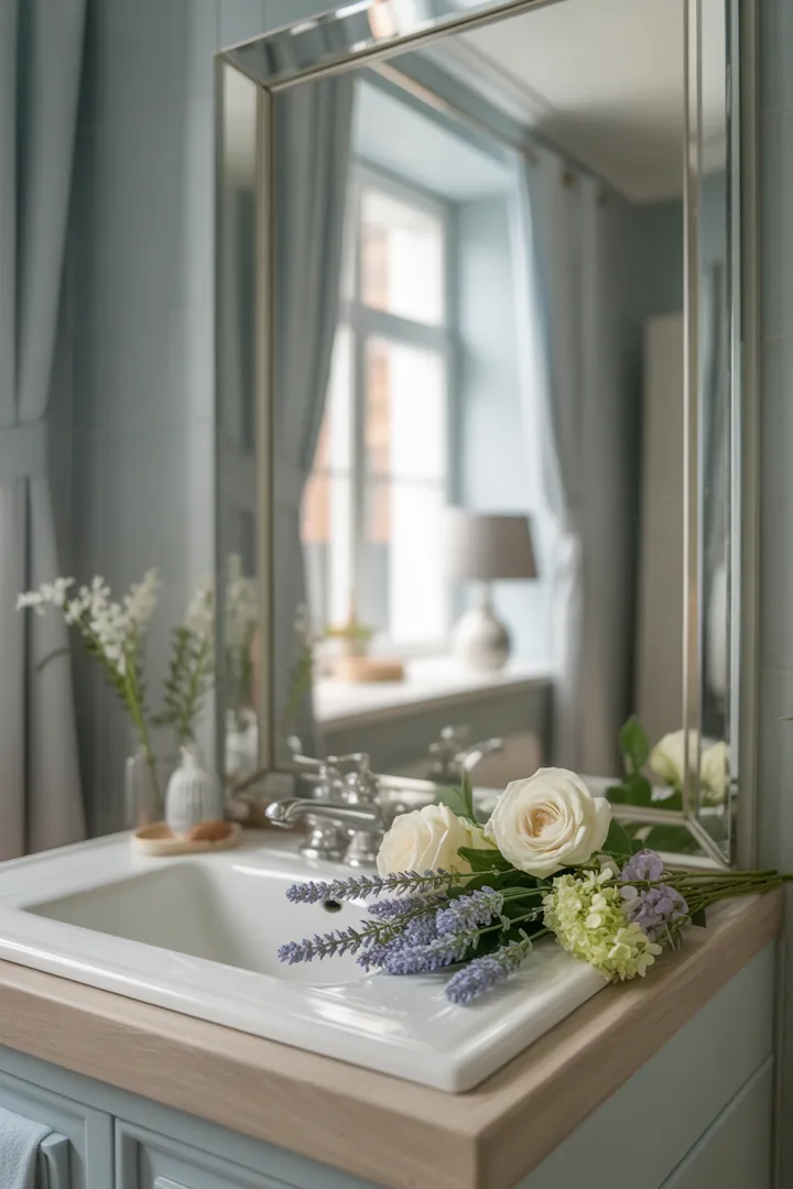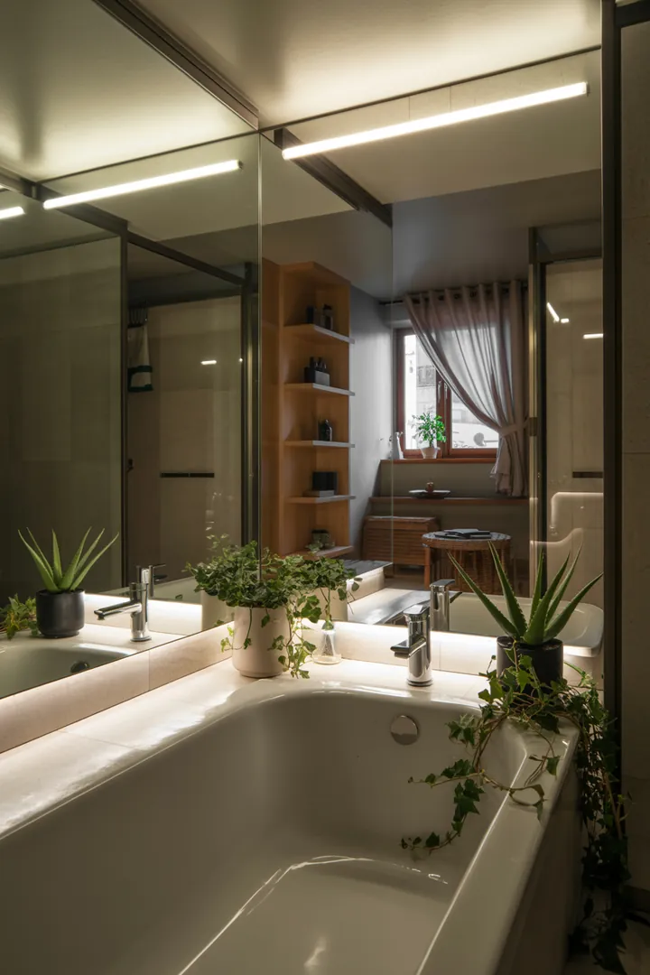 🖼️ Design-Tipp: Kombinieren Sie bewusst mit kontrastierenden Oberflächen: Ein kühler Spiegel über strukturierten Fliesen wirkt wie ein Kunstwerk an der Wand.