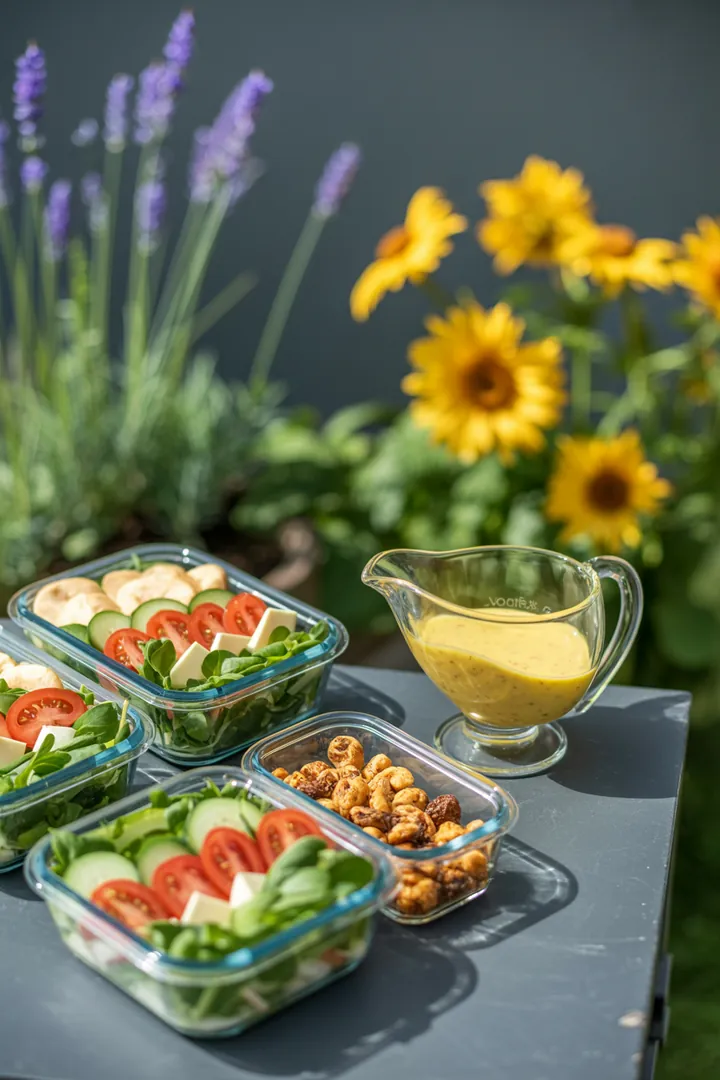 - Packen Sie Protein separat, wenn es stark riecht (z. B. Thunfisch) oder die Textur leidet.